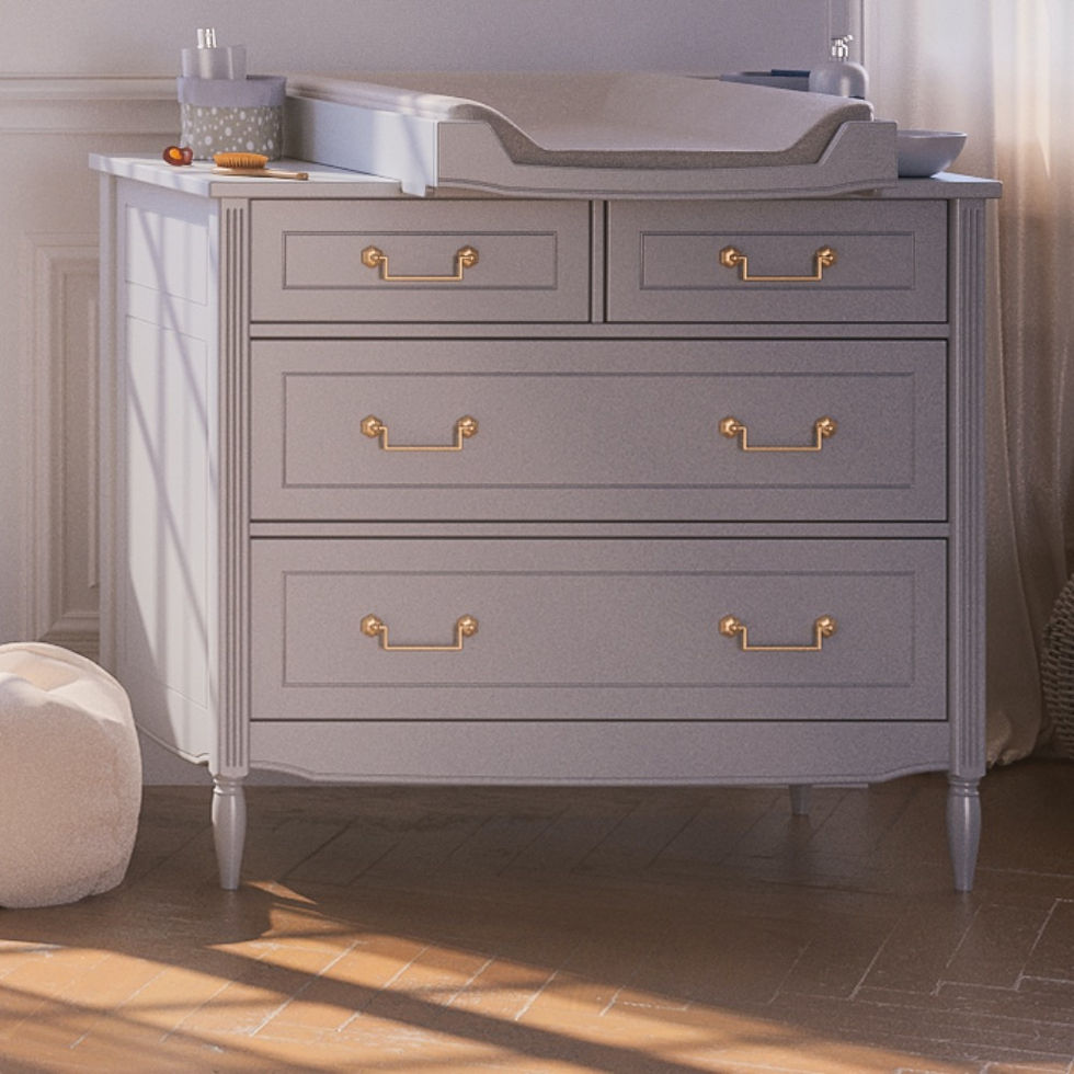 Soft-closing drawers. Removable changing box, adjustable in length or width. Height: 86 or 90 cm depending on the model. Apparent solid wood, canes and natural rattan fibers